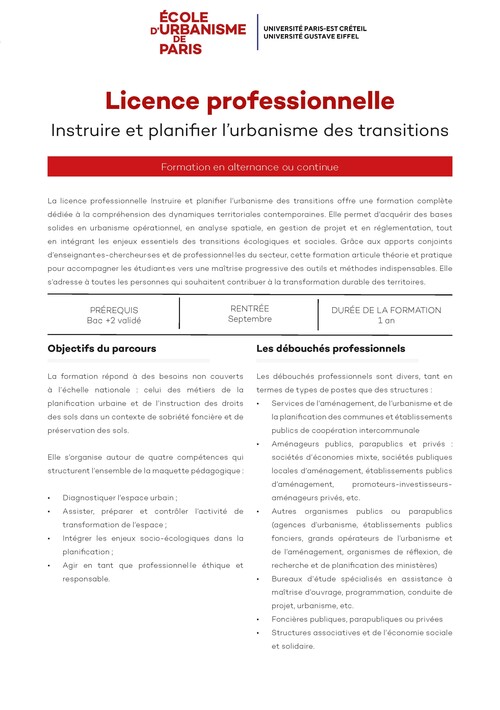 - Licence Professionnelle : Instruire et planifier l’urbanisme des transitions